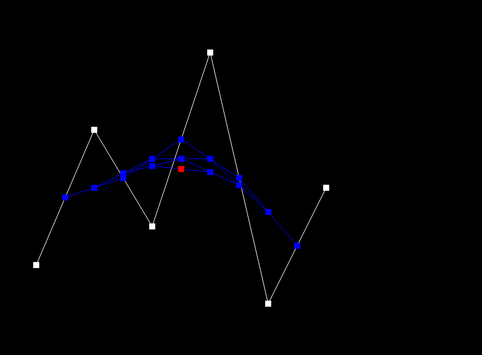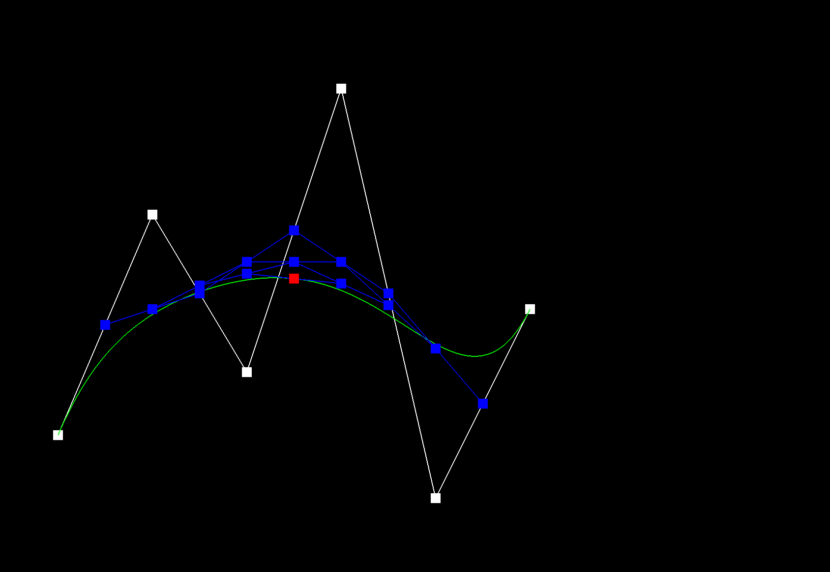 evaluate1D, recursively applied de Casteljau's algorithm to a 1D list of control points, using evaluateStep.