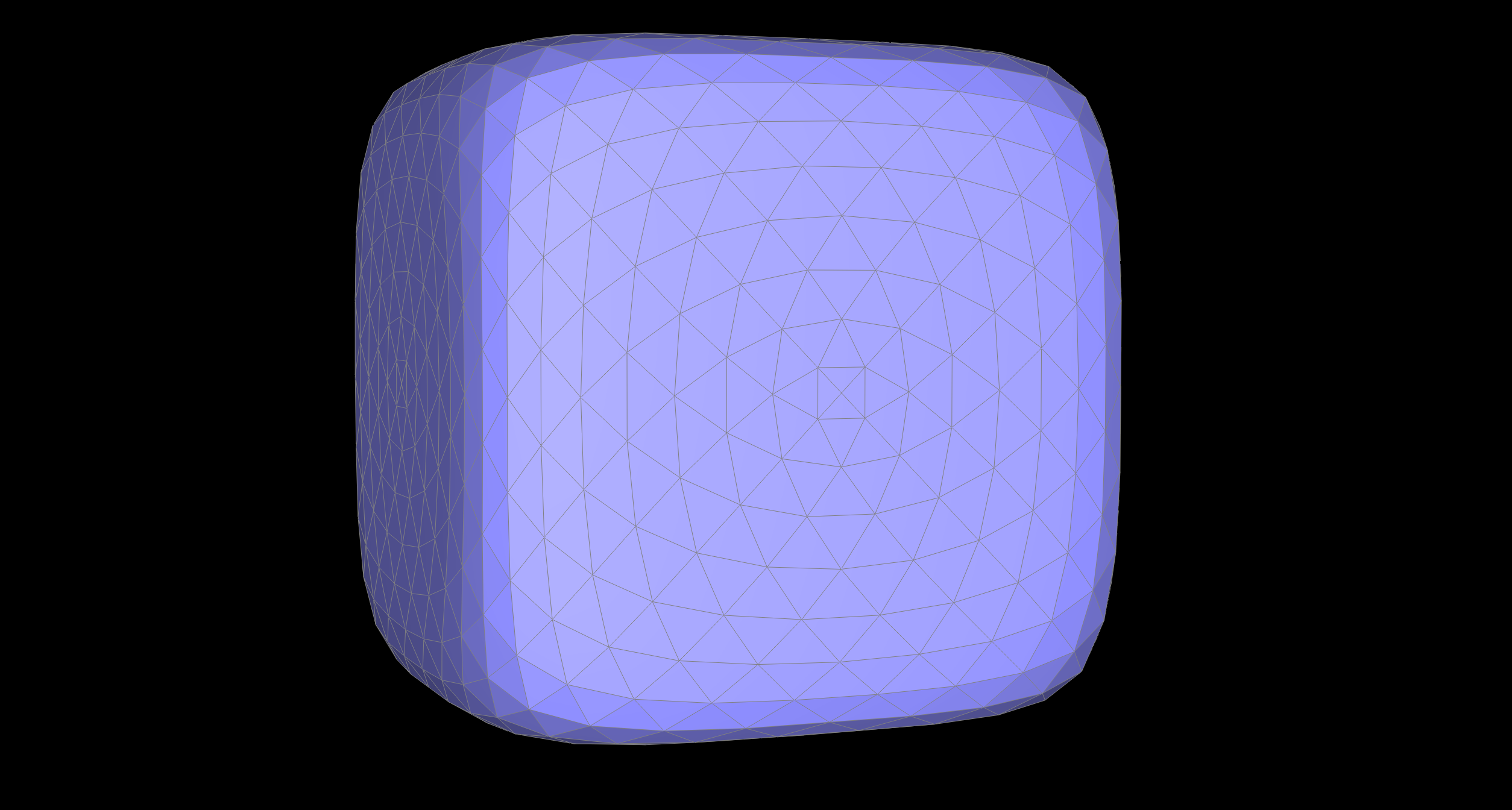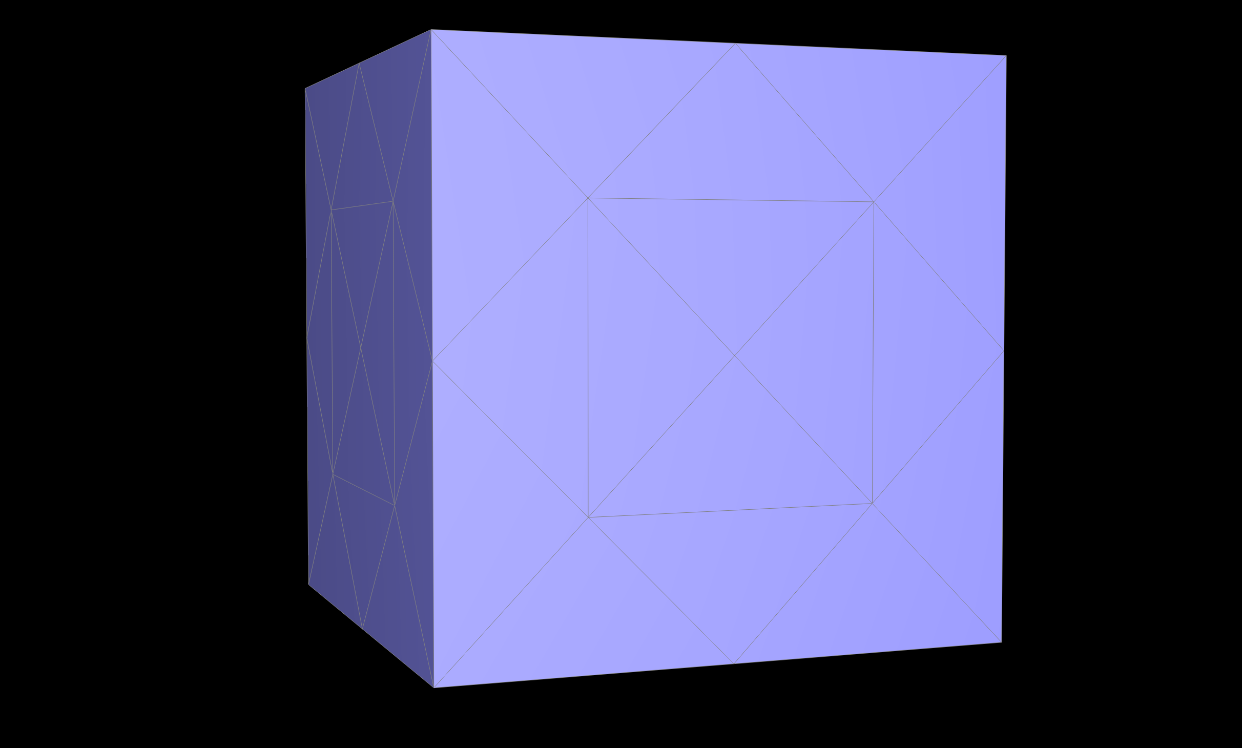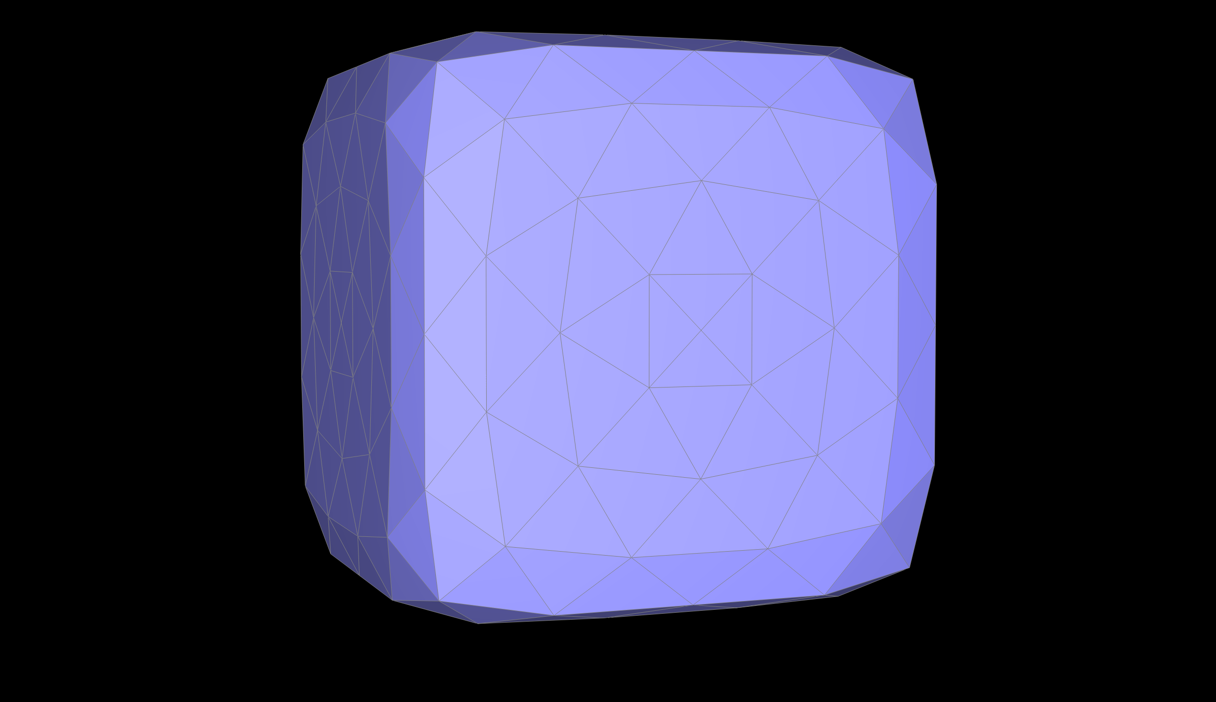 Sharp corners where edges meet appear more pointy after subdividion than corners where there are less edges meeting, which would be more flat. We can see this in the below cube example where in the original upsampling of asymmetric mesh, some edges have more edges meeting in certain corners than others, so greater edge corners are more defined in the final subdivision resulting in an inaccurate upsampled result.