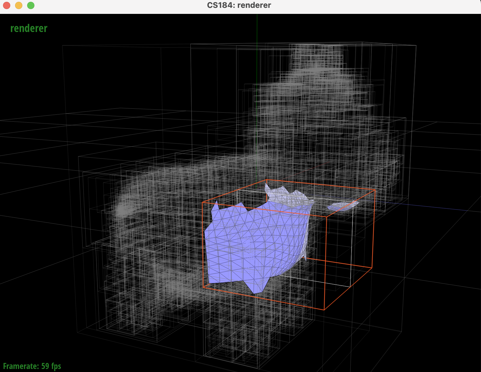 The previous approach, while functional, takes a very long time to render especially as the number of primitives increase. This iis because we are performing a linear scan of all primitives for possible intersections which becomes expensive as scenes increase to thousands of primitive mesh elements. To adress this, we implement a bounding volume hierachy (BVH) — a data structure, similar to binary trees that wrap bounding volumes that form the leaf nodes of the tree.